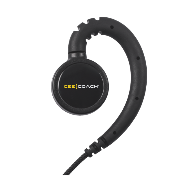 Das CEECOACH Kabel-Headset (Mono) wurde speziell für maximalen Tragekomfort und hervorragende Sprachqualität entwickelt. Der ergonomische Ohrbügel sorgt für einen sicheren und bequemen Sitz, auch bei Bewegung.